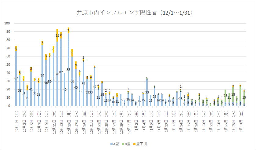 ※1/16(金) ・・・ 10代A型1名はB型も同時感染