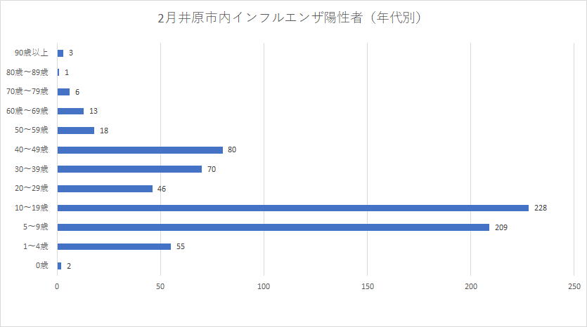 ●R8年2月井原市内インフルエンザ患者発生状況(日計・年齢別)